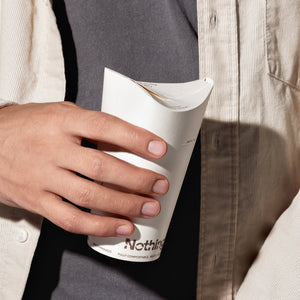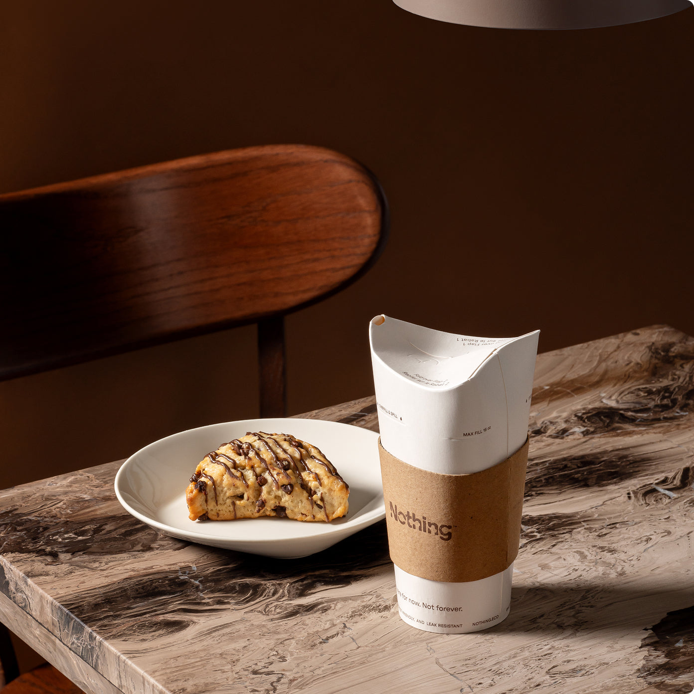 Forget waxy coatings and their weird aftertaste. Nothing Hot Cups are sealed with a water-based coating that disappears in 180 days, not in your mouth.